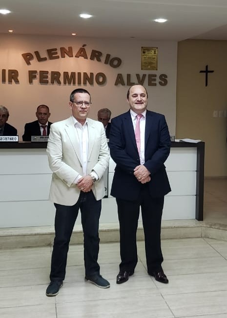 Valmir Dall’agnol, representando o Legislativo, entrega homenagem ao Sr. Beto Albuquerque.