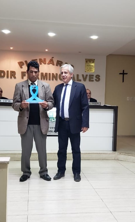 Prefeito Sr. Cilon Rodrigues da Silveira entrega homenagem ao Sr. Clélio Medeiros da Luz.