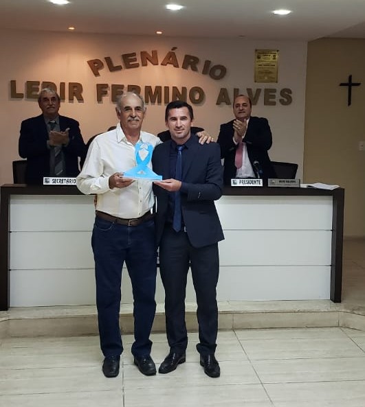 Vereador Cleomar Gnoatto Vargas entrega homenagem ao Sr. Lauro Jardim.
