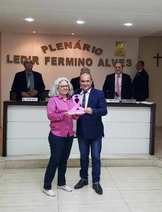 Vereador Valdir Machado Silveira entrega homenagem aSra. Rejane Oliveira.