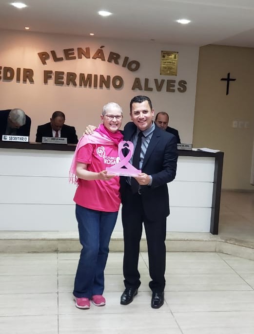 Vereador Fábio Júnior Ramos entrega homenagem a Sra. Silvana Maria Alves.