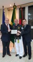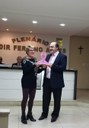 Vereadores Fábio e Dallagnol na homenagem ao Sr. Michael